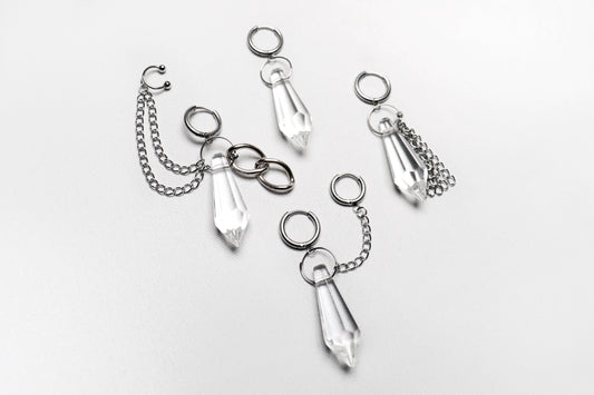 Mono boucle d’oreille à pendentif et pompon en chaine