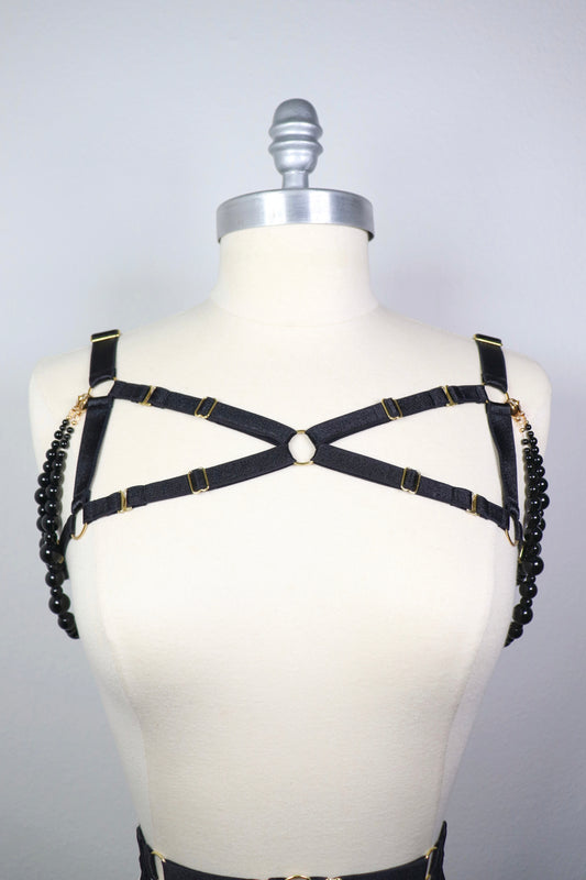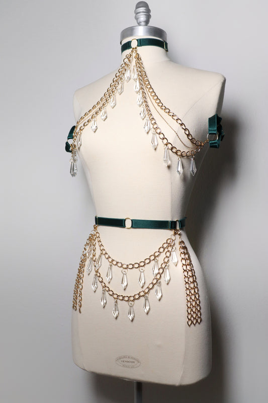 ✨ LIMITED EDITION ✨ Gold-colored chain and glass pendant bust harness