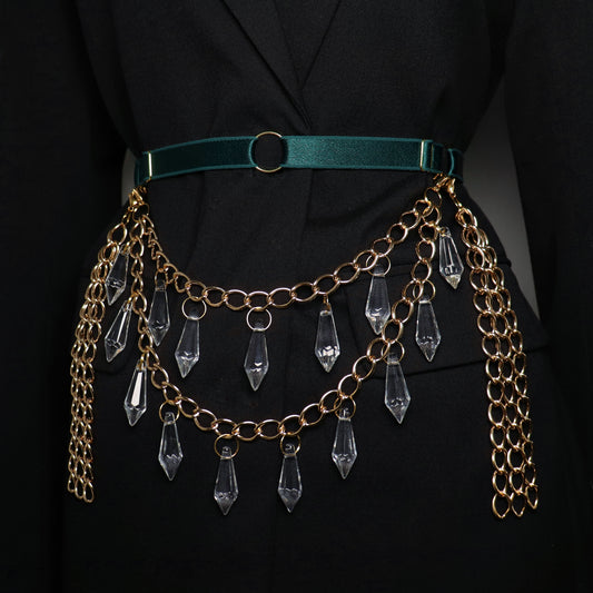 ✨ LIMITED EDITION ✨ Gold-colored chain belt with glass pendants