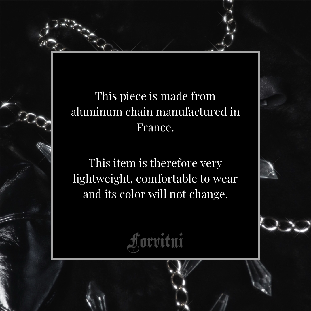 • The chain (made in France) is made of aluminum, the pendants are made of glass and the connecting rings are made of stainless steel