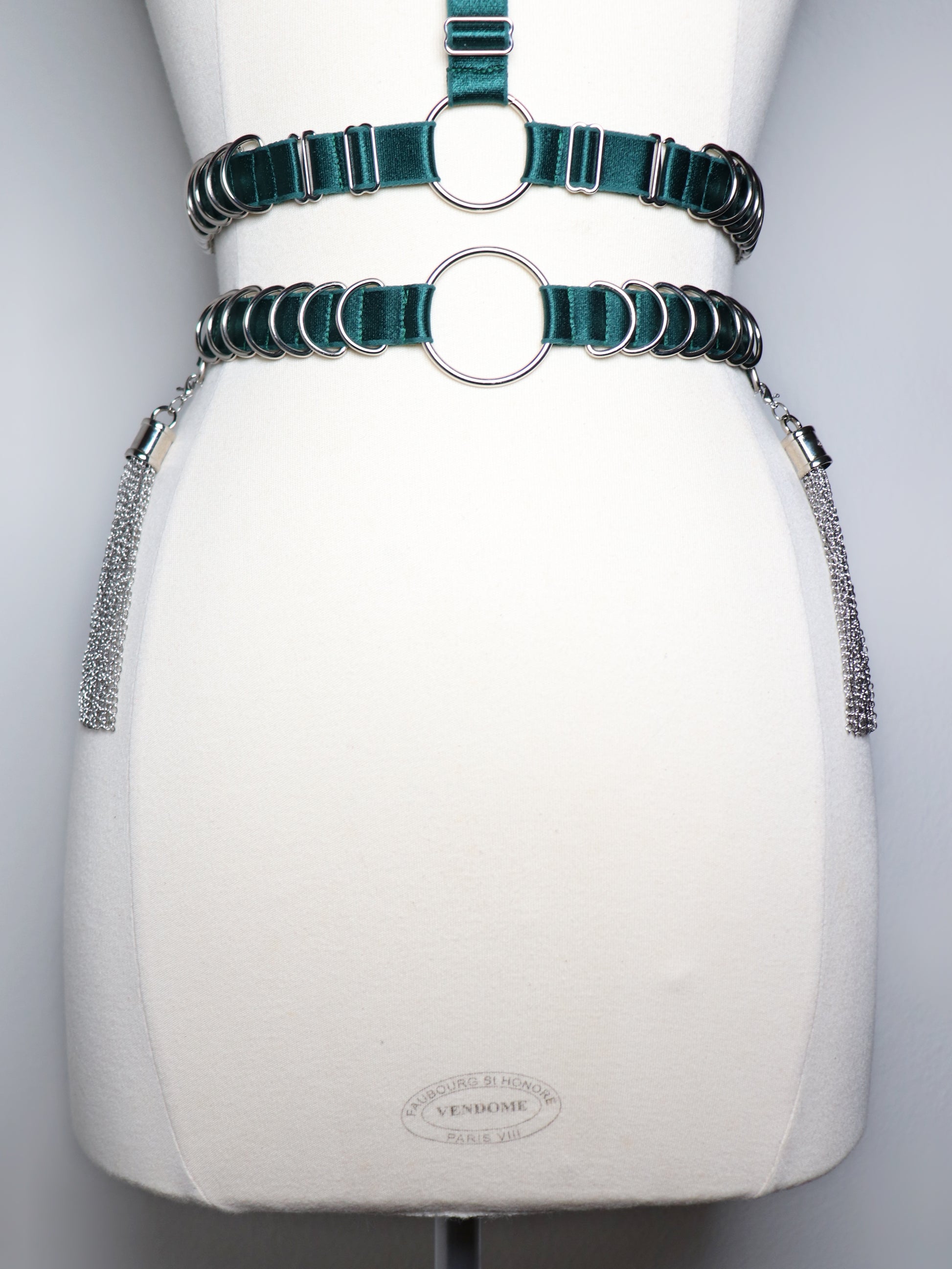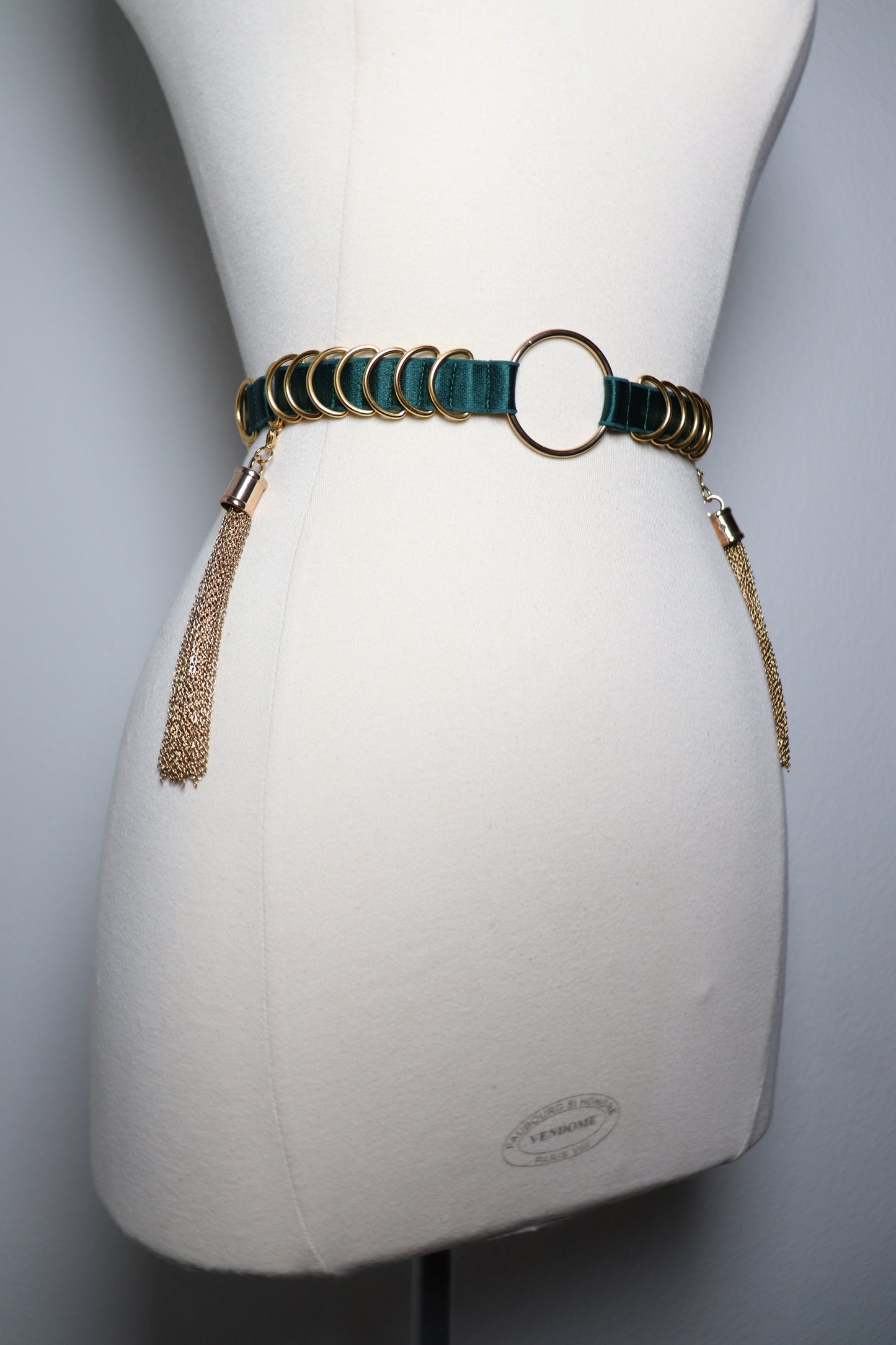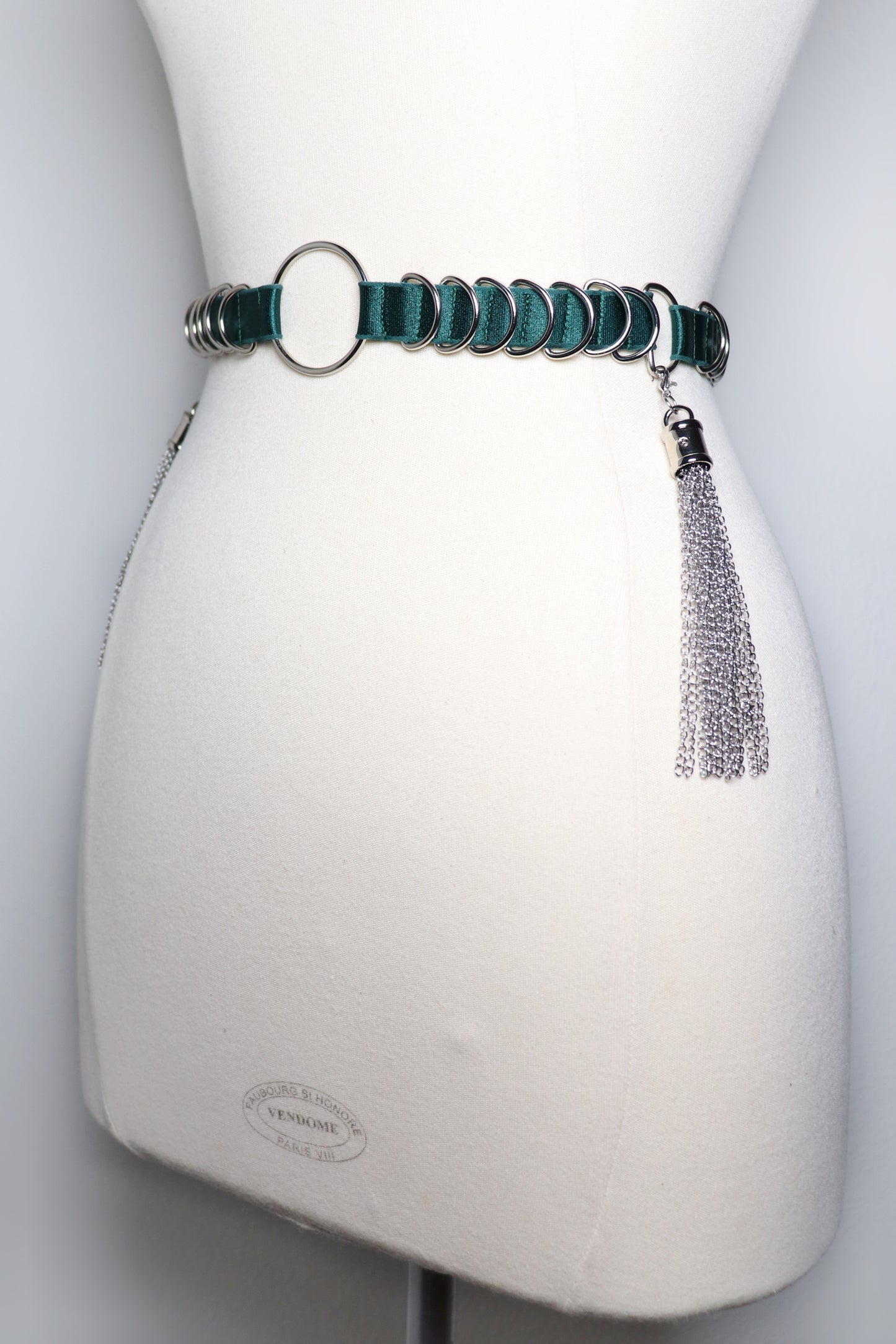 • Elastic waistband with D rings and removable chain tassels (also made by me)