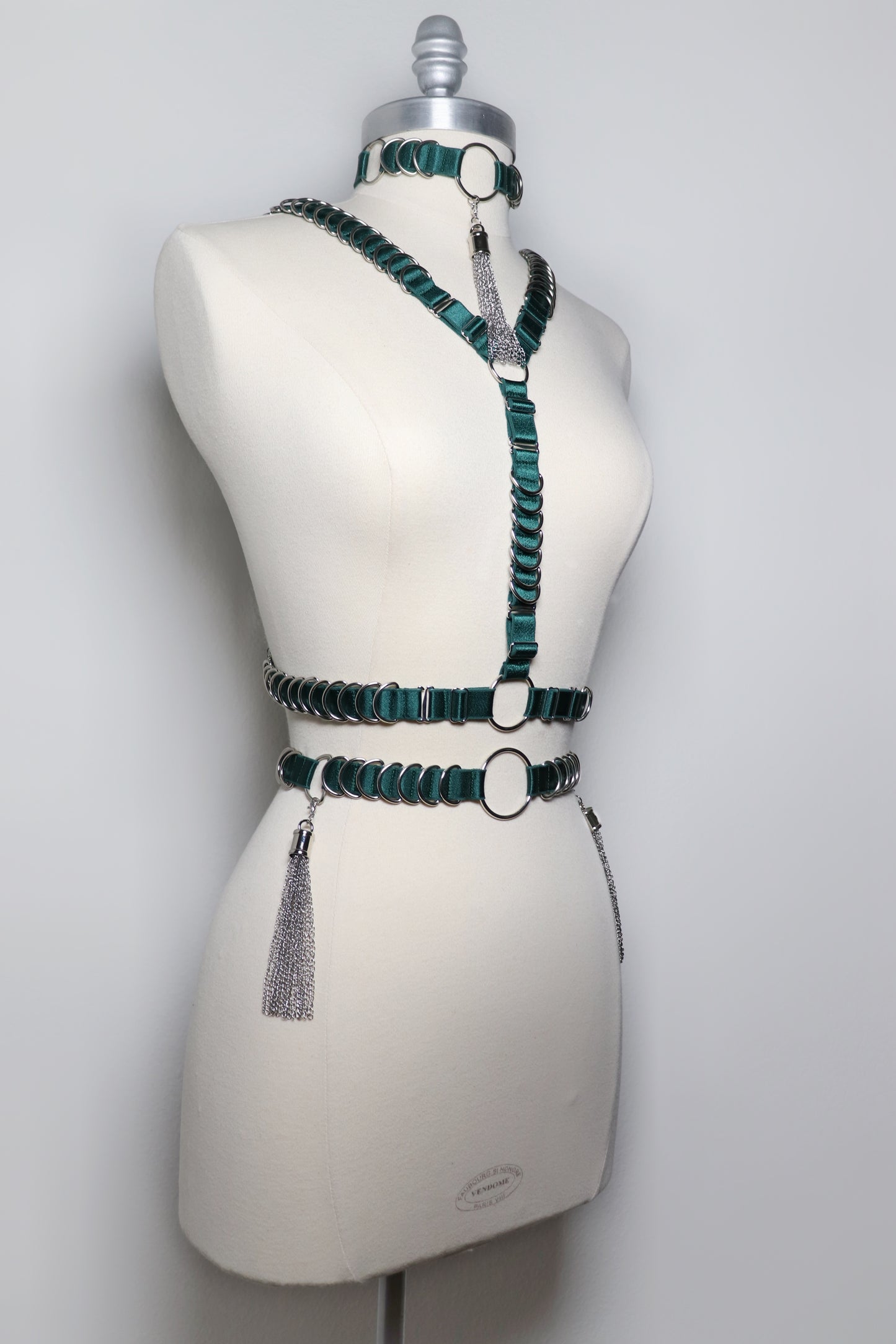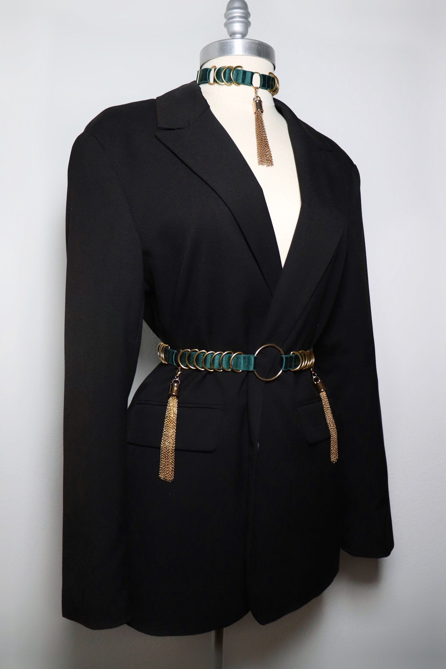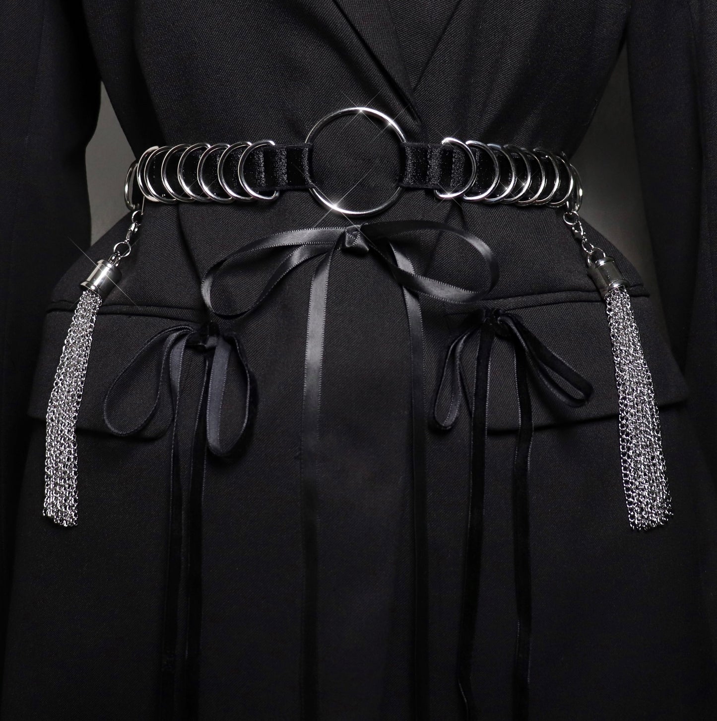 • Elastic waistband with D rings and removable chain tassels (also made by me)
