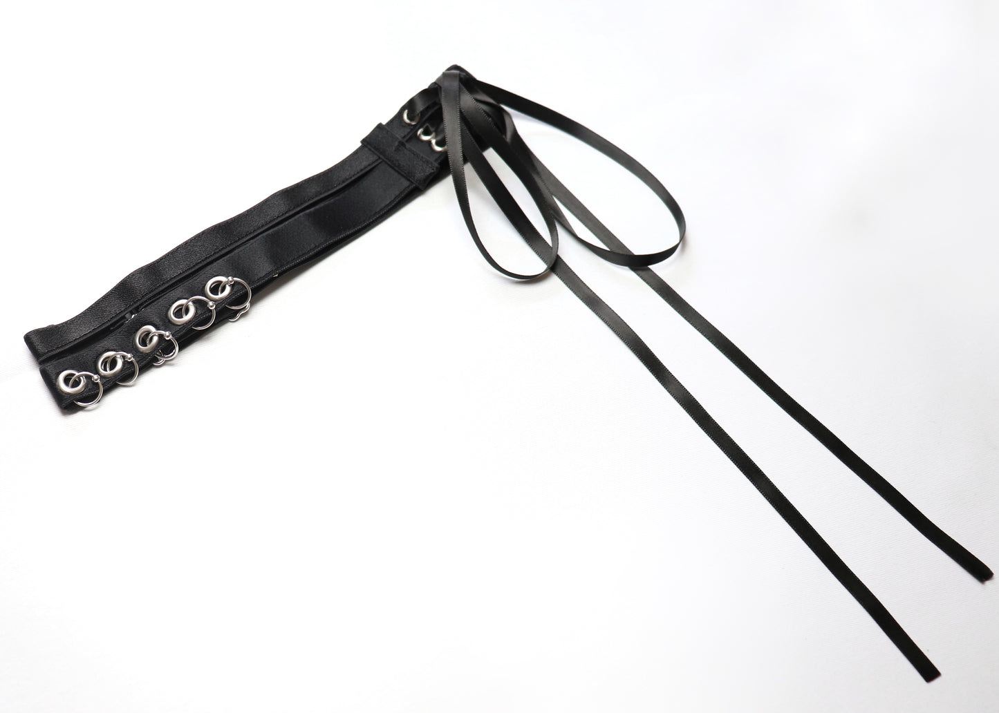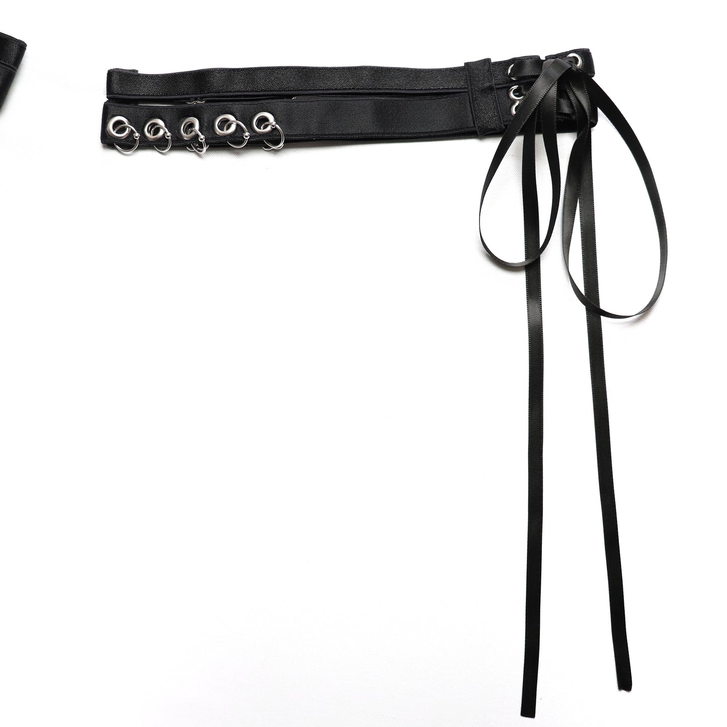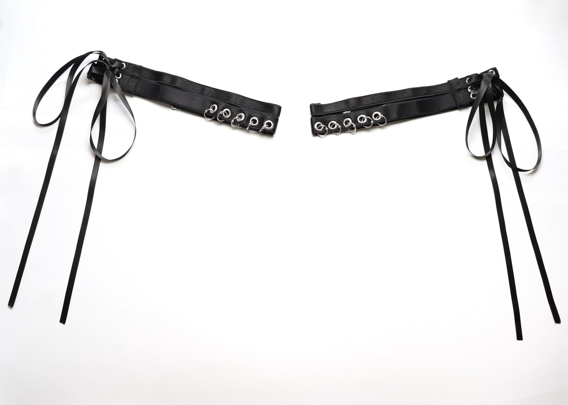 • Two-row satin elastic garters, decorated with eyelets, piercings and side lacing